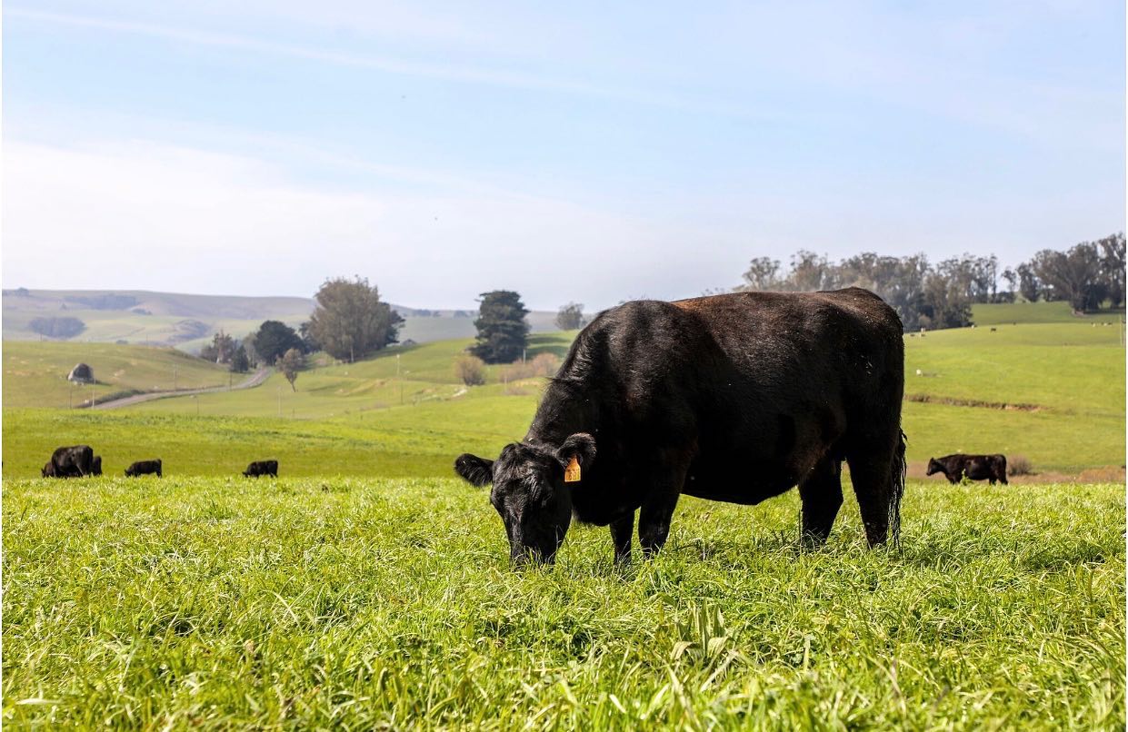 Stemple Creek cattle are always 100% grass-fed and grass-finished, which means they never eat corn, soy, or other grains. They also live their entire lives on open pastures and never see a feedlot. To make this possible, Stemple Creek grazes their cattle on the home ranch in Tomales, and on other seasonal pastures throughout Northern California.